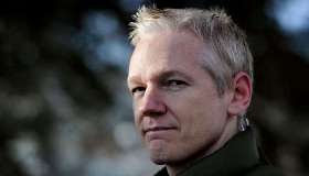 concluindo sobre Julian Assange e o WikiLeaks, um letreiro descreve o destino